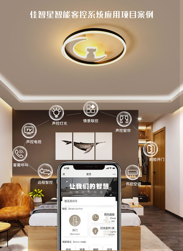 • 客房智能管理控制系統在酒店、賓館房間里可以通過智能化、節能化的高科技技術實現酒店客房的智能管理與控制。讓入住的酒店客人更加方便、安全,服務倍感溫馨親切,同時也給酒店方帶來智能化系統的管理。客控系統不僅僅提高酒店管理和服務水